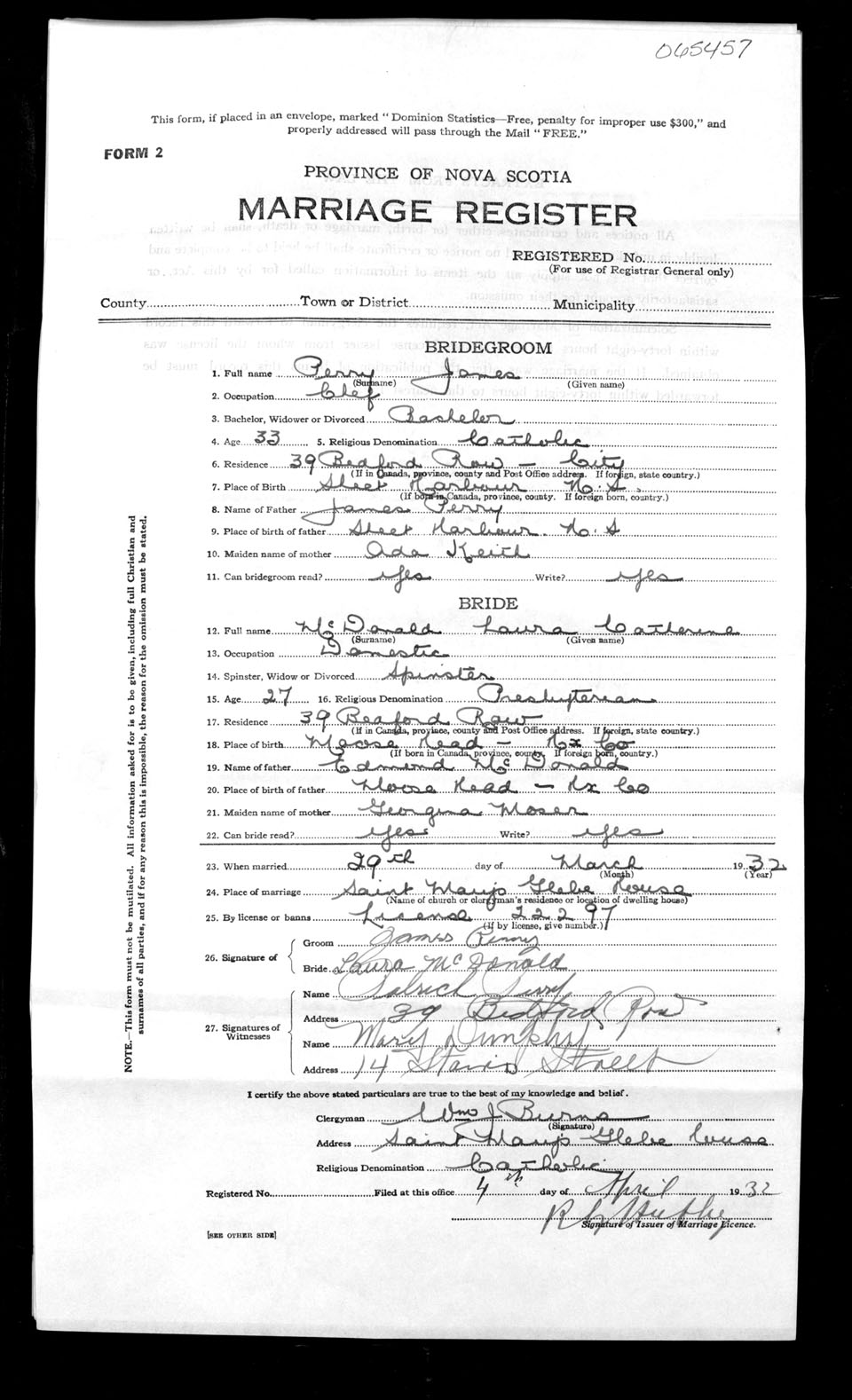 Registration: Year: 1932 number: 65457