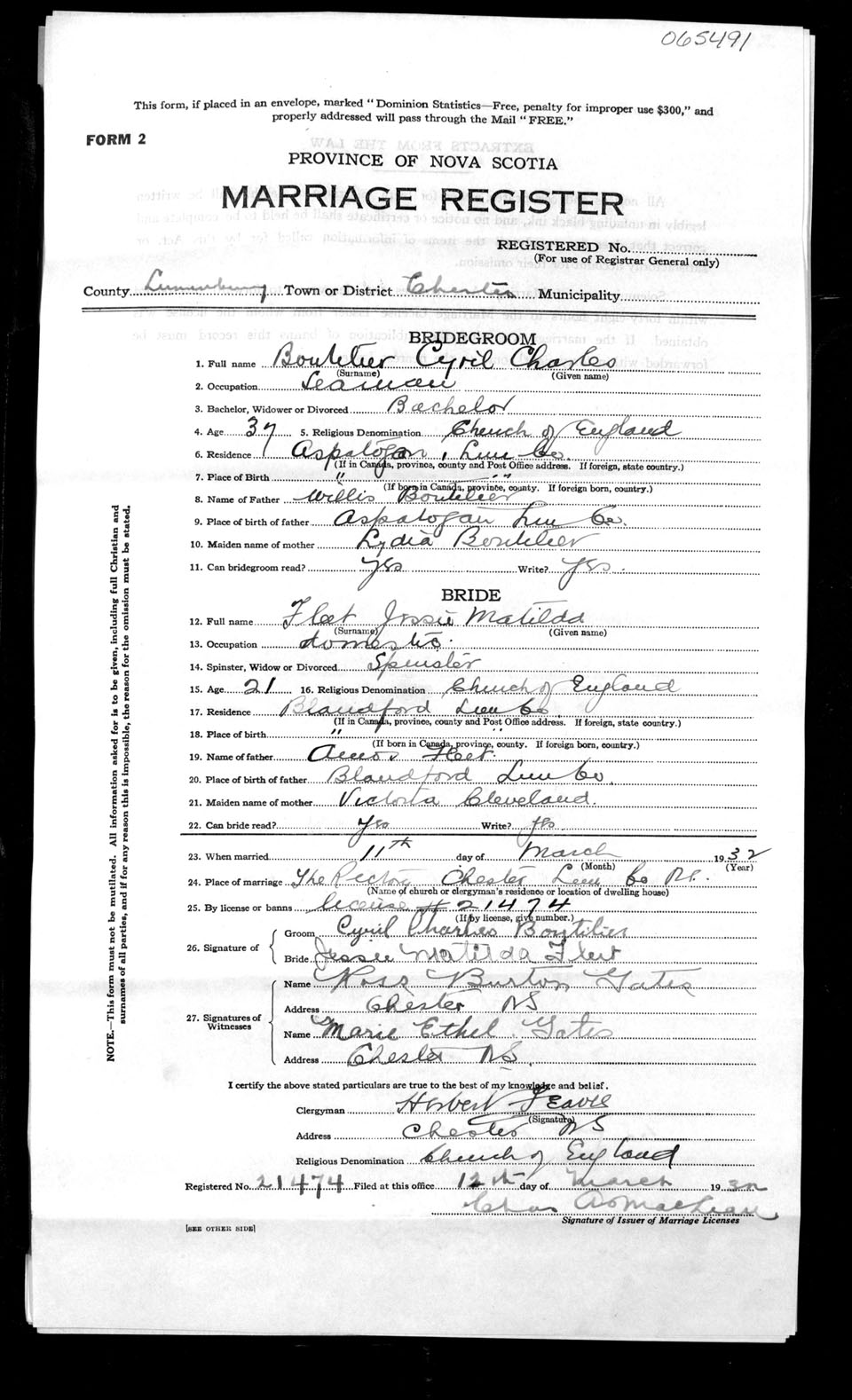 Registration: Year: 1932 number: 65491