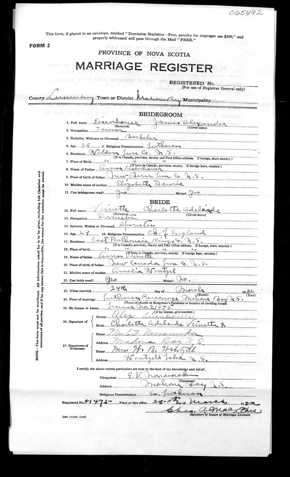 Registration: Year: 1932 number: 65492