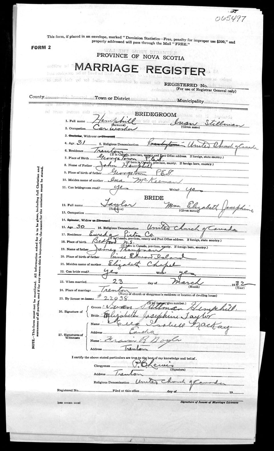 Registration: Year: 1932 number: 65497