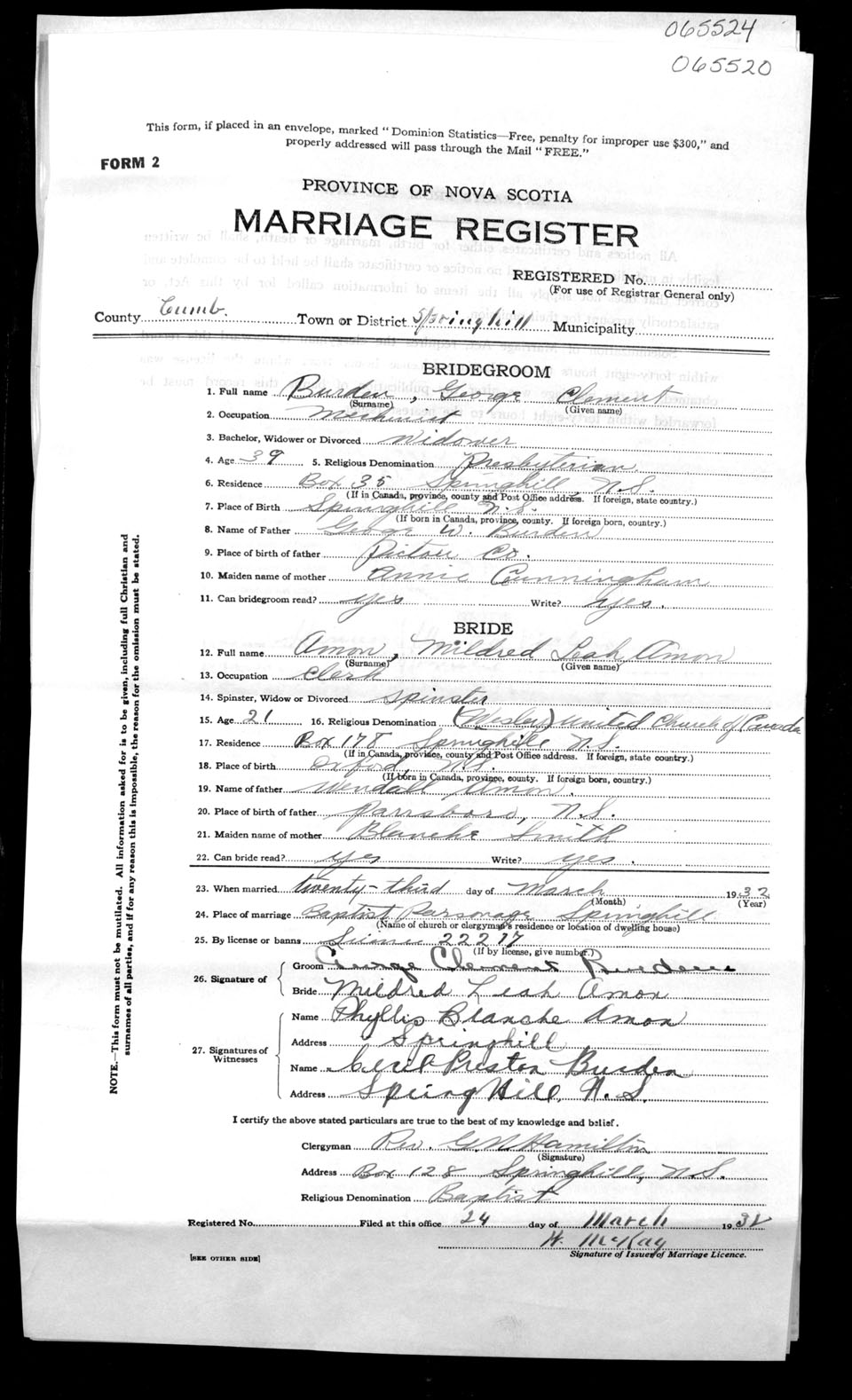 Registration: Year: 1932 number: 65520