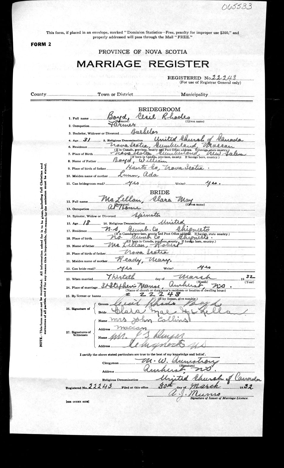 Registration: Year: 1932 number: 65533