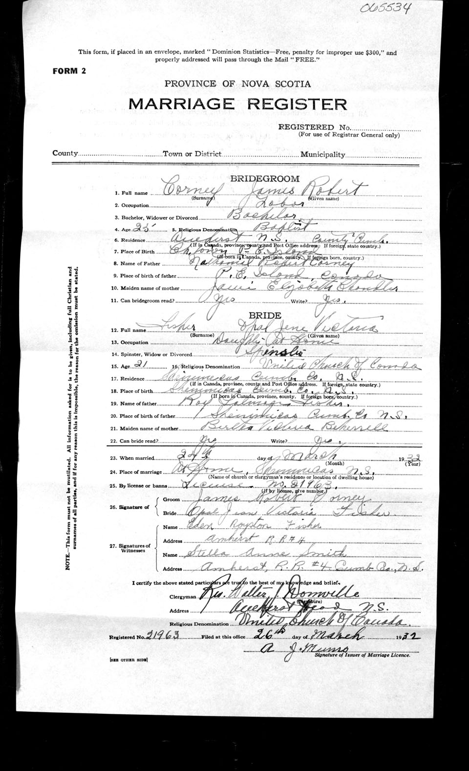 Registration: Year: 1932 number: 65534