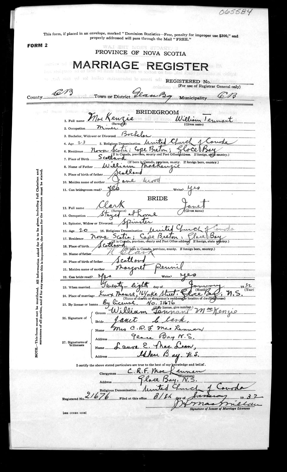 Registration: Year: 1932 number: 65584