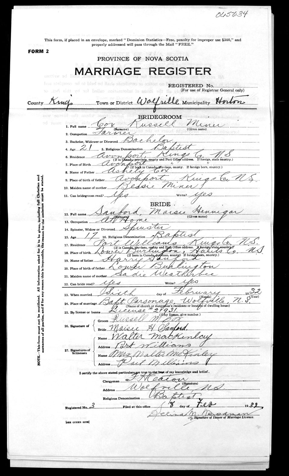 Registration: Year: 1932 number: 65634