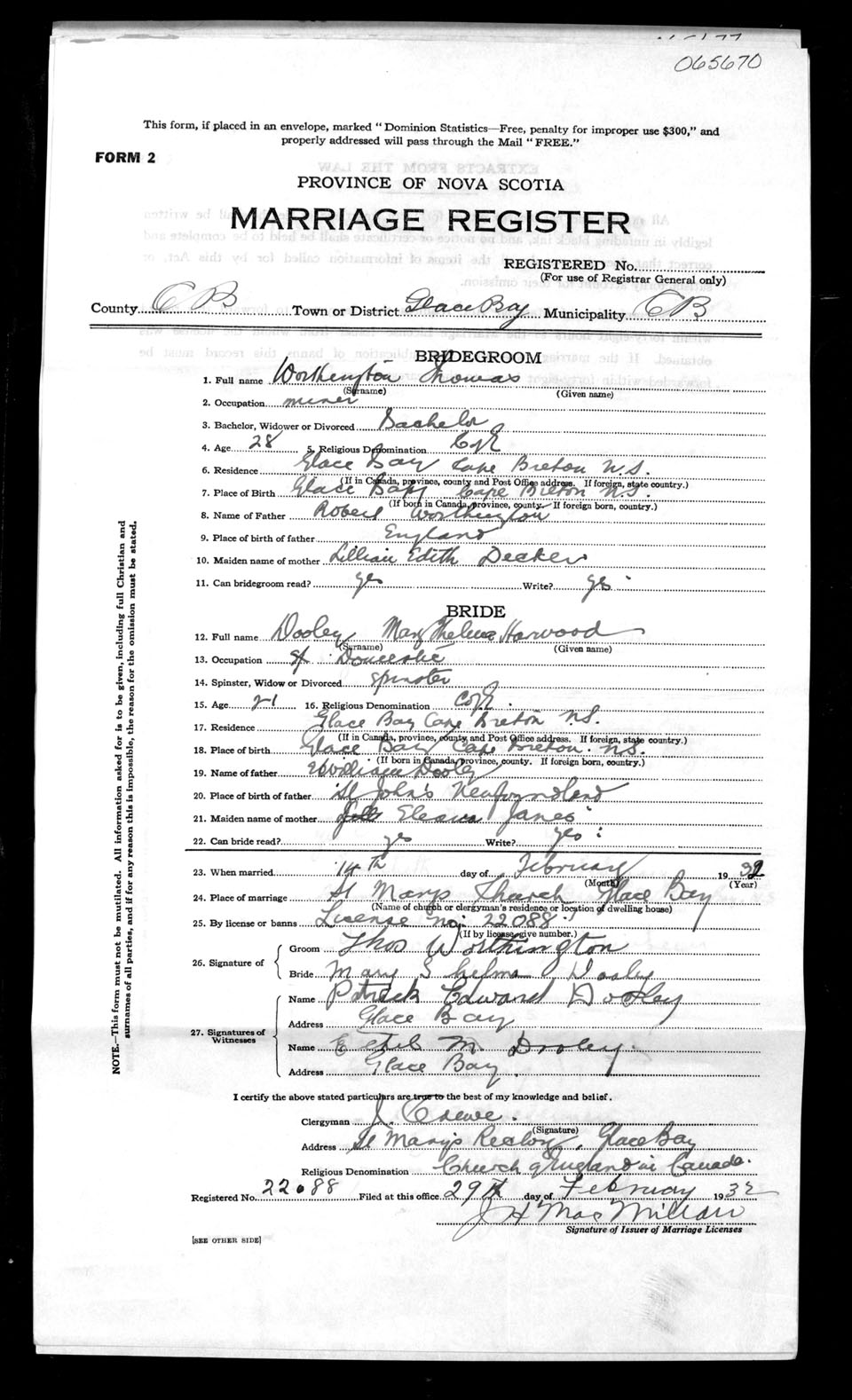 Registration: Year: 1932 number: 65670