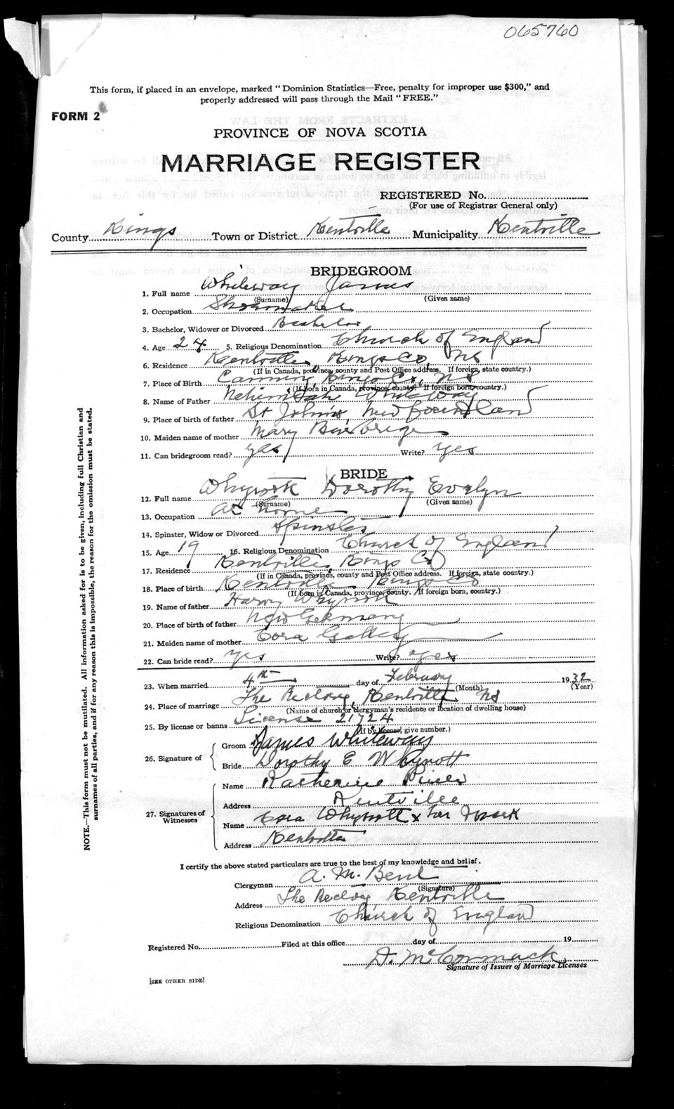 Registration: Year: 1932 number: 65760