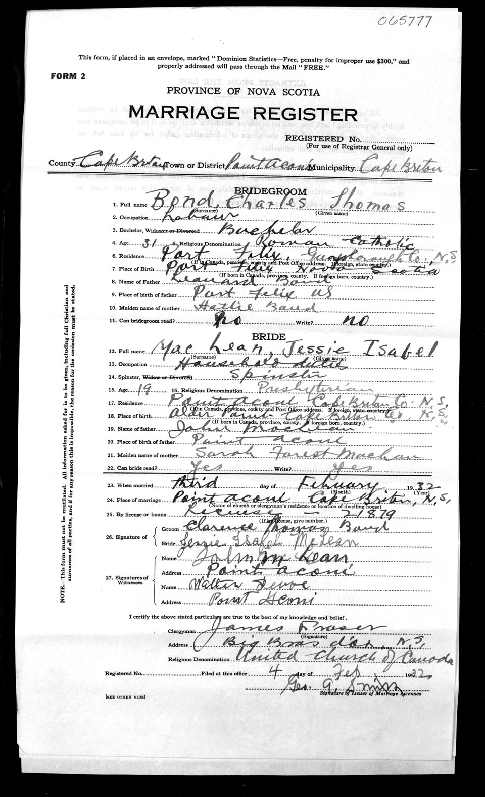 Registration: Year: 1932 number: 65777