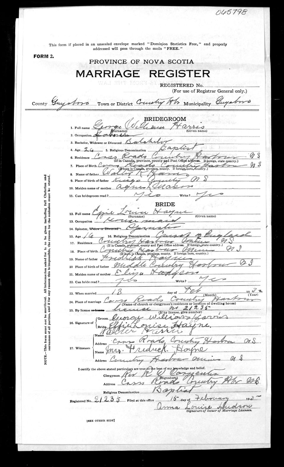 Registration: Year: 1932 number: 65798