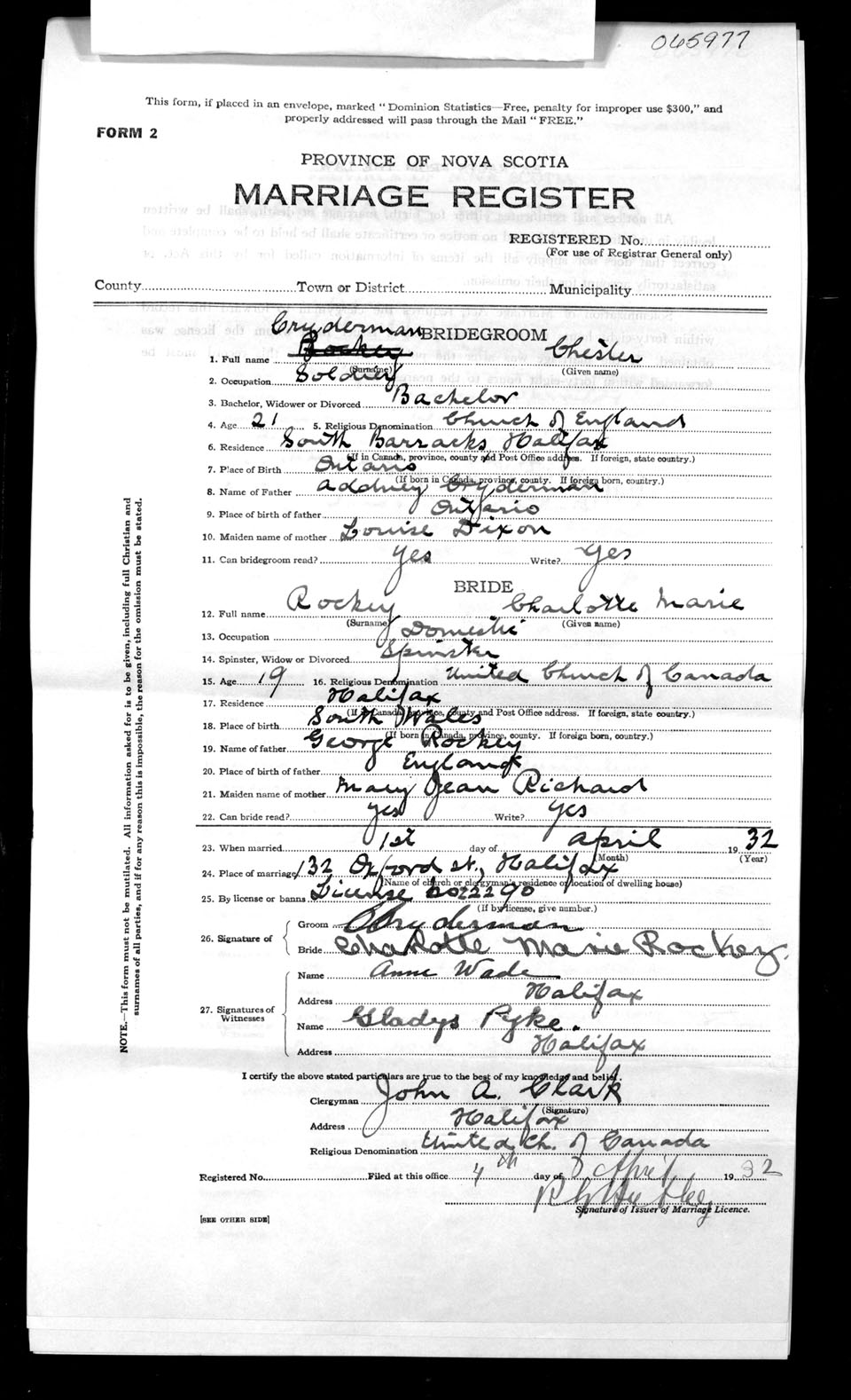 Registration: Year: 1932 number: 65977
