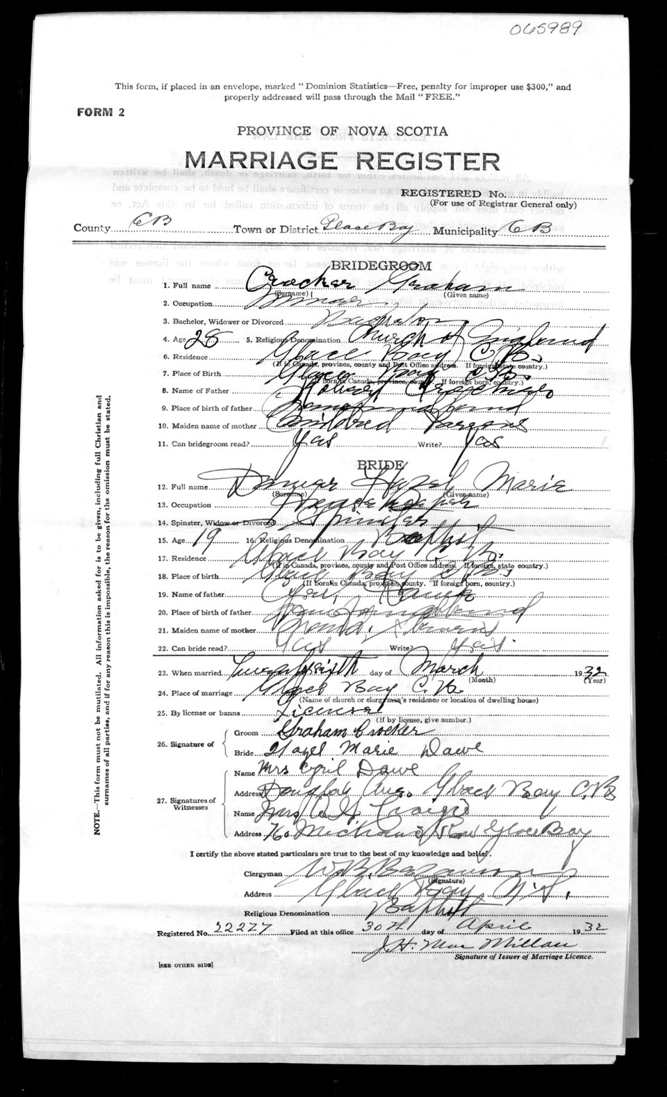 Registration: Year: 1932 number: 65989