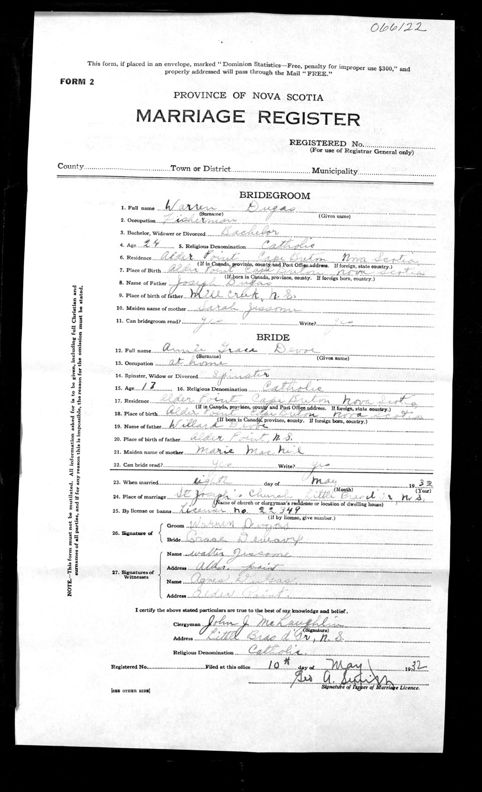 Registration: Year: 1932 number: 66122