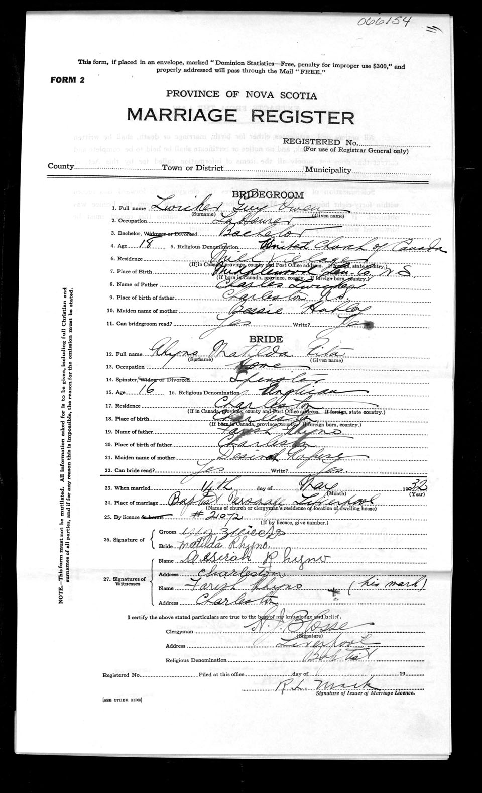 Registration: Year: 1932 number: 66154
