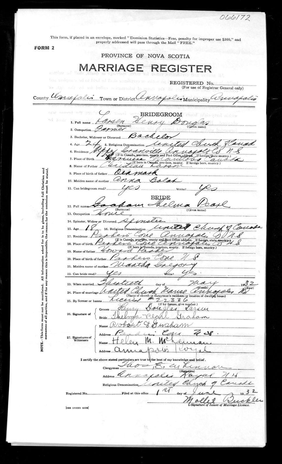 Registration: Year: 1932 number: 66172