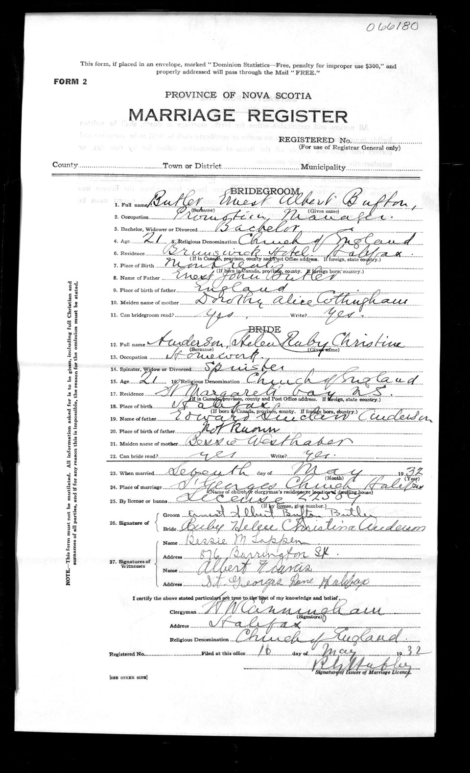 Registration: Year: 1932 number: 66180