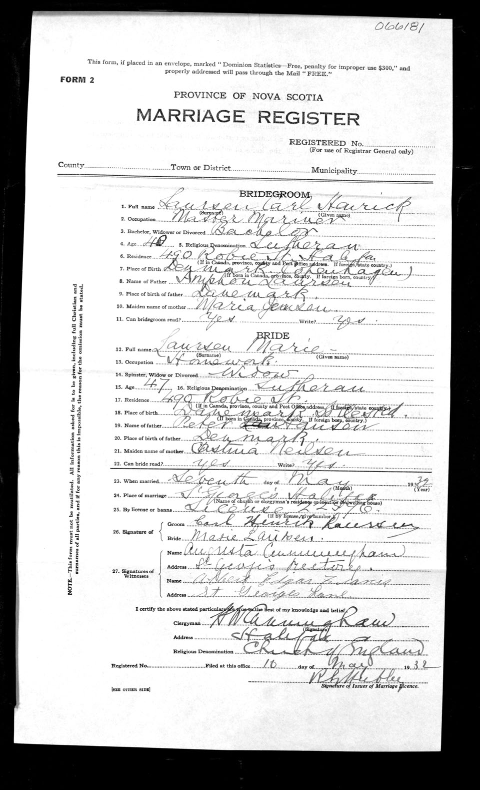 Registration: Year: 1932 number: 66181