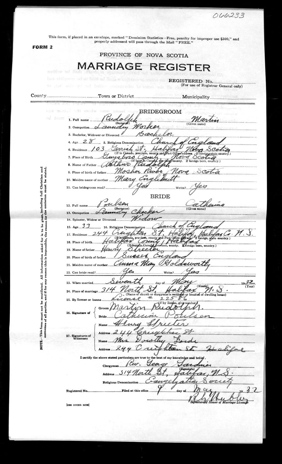 Registration: Year: 1932 number: 66233