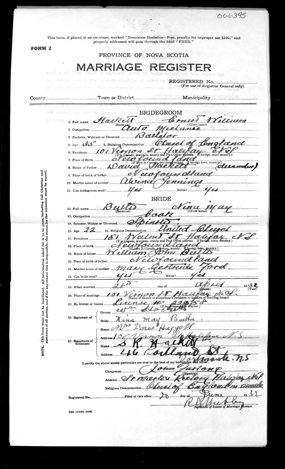 Registration: Year: 1932 number: 66395