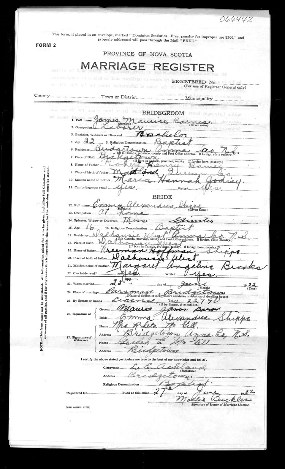 Registration: Year: 1932 number: 66442