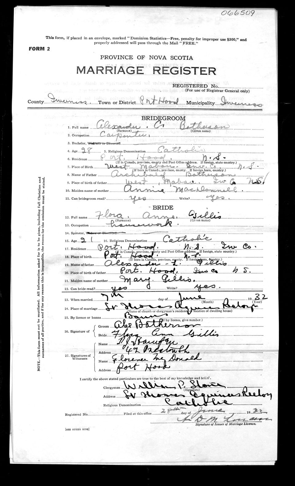 Registration: Year: 1932 number: 66509