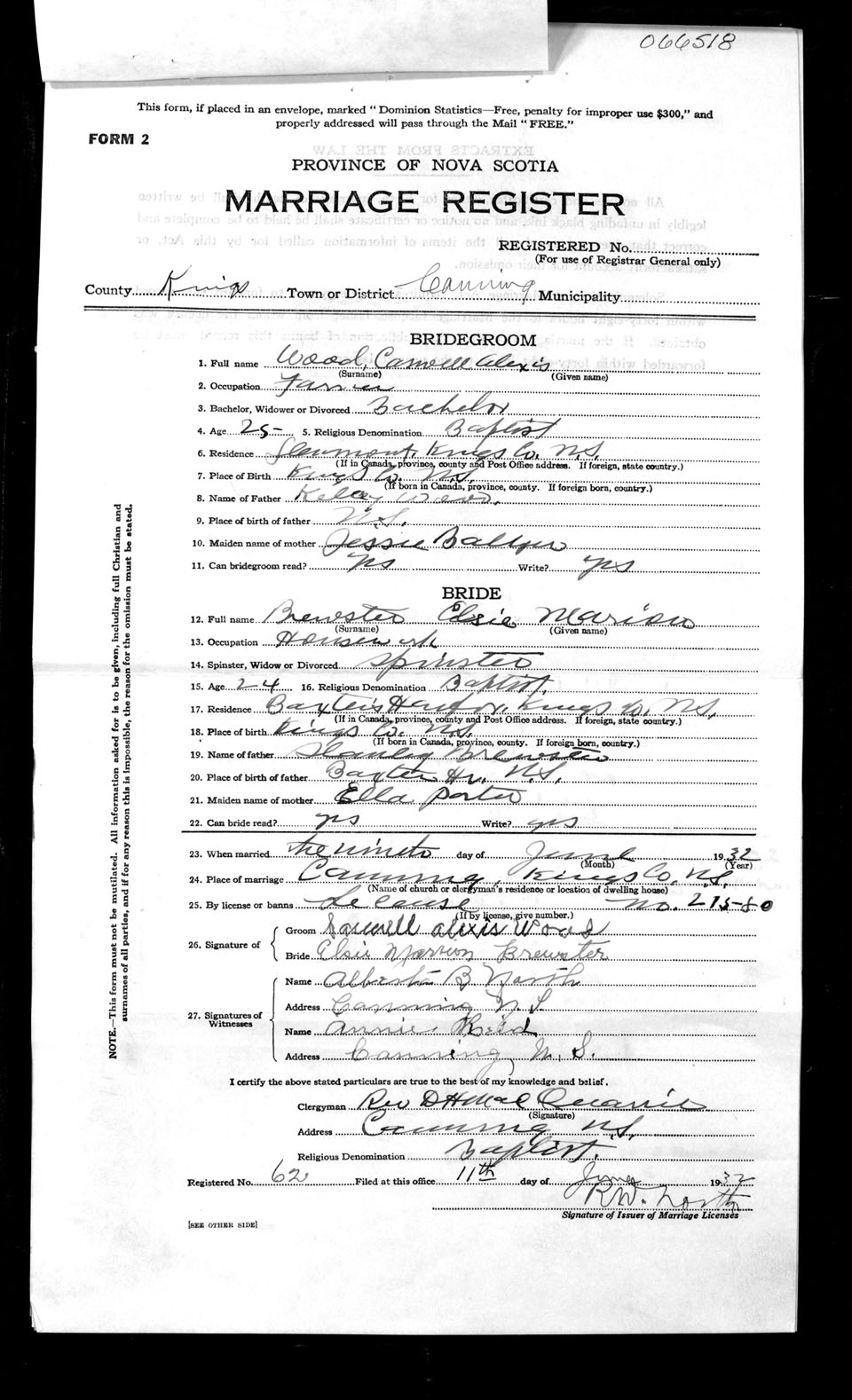 Registration: Year: 1932 number: 66518