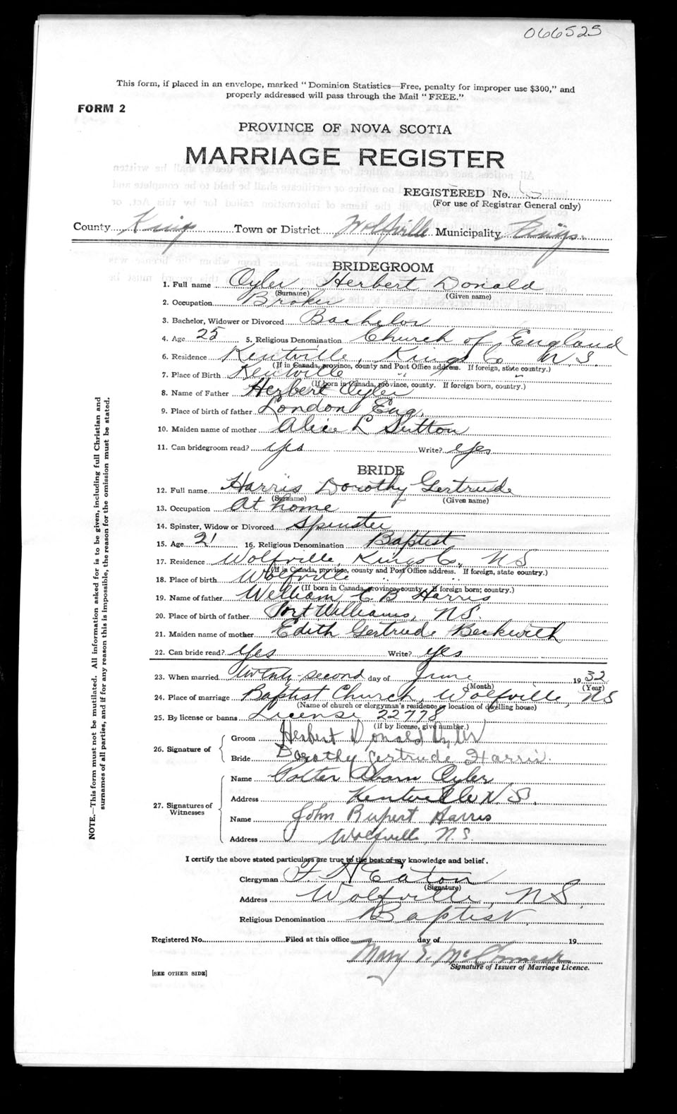 Registration: Year: 1932 number: 66525