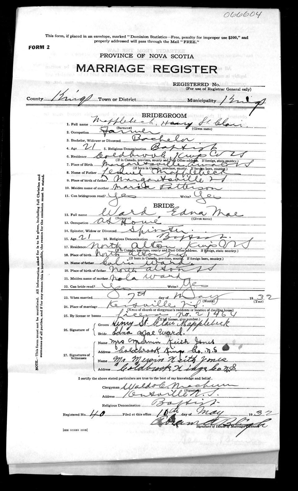 Registration: Year: 1932 number: 66604