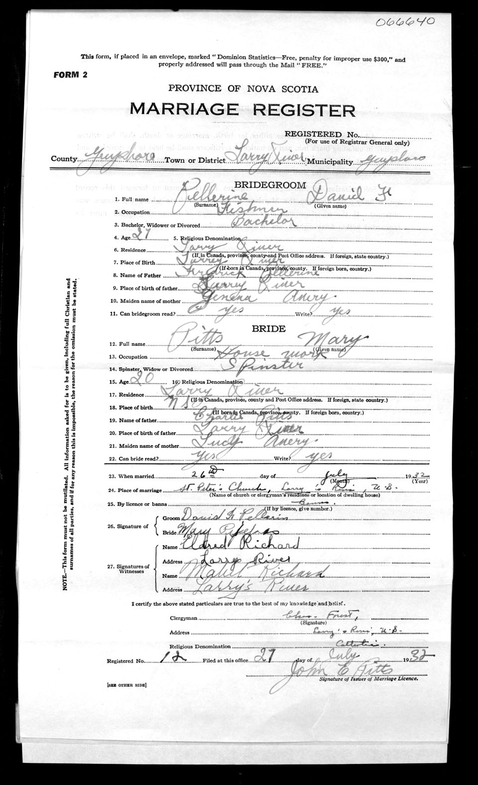 Registration: Year: 1932 number: 66640