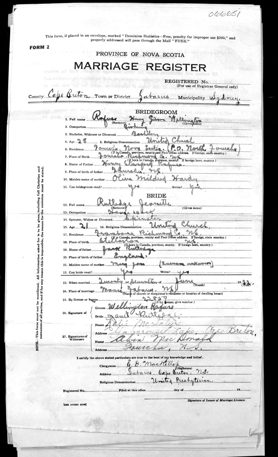 Registration: Year: 1932 number: 66651