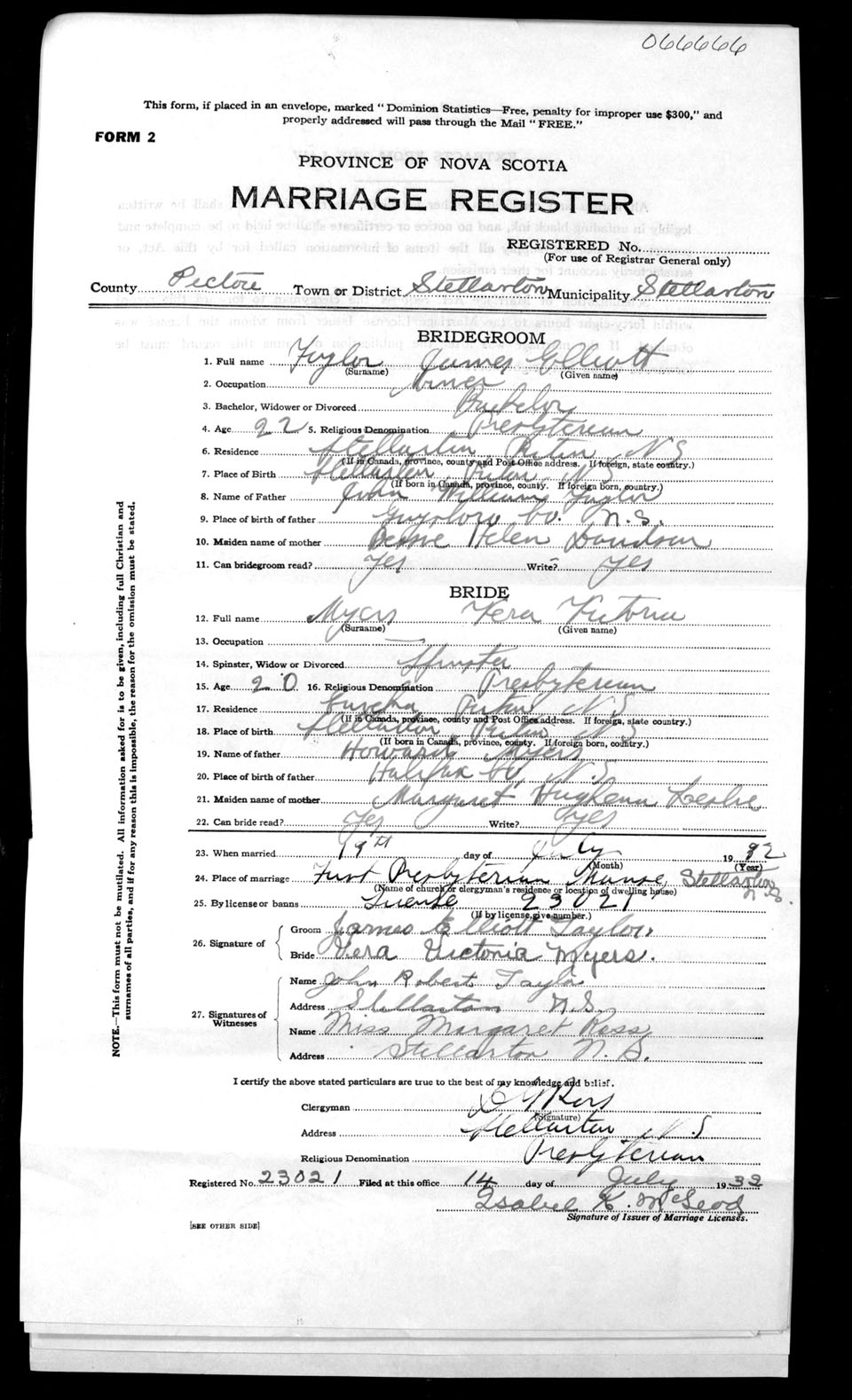Registration: Year: 1932 number: 66666