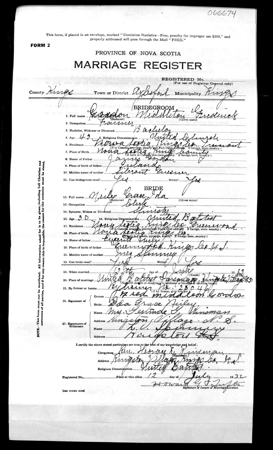 Registration: Year: 1932 number: 66674