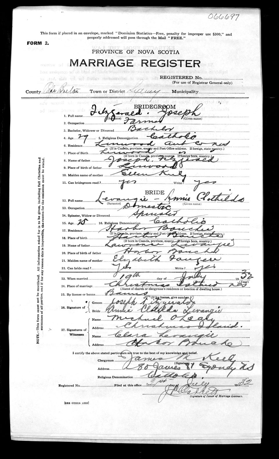 Registration: Year: 1932 number: 66697