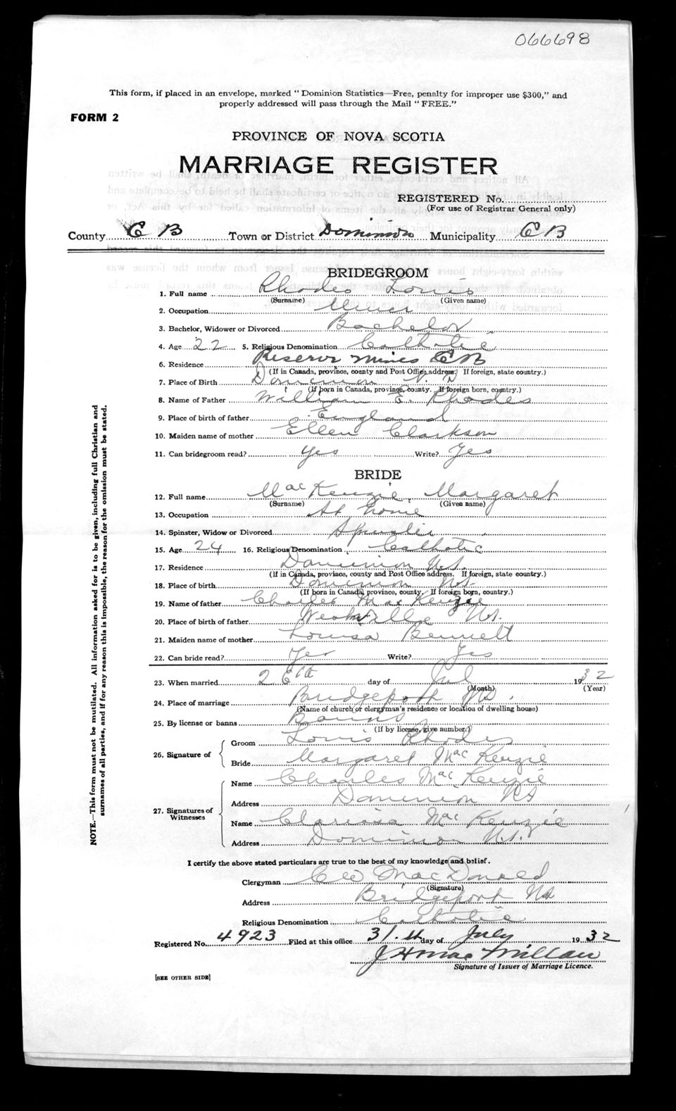 Registration: Year: 1932 number: 66698