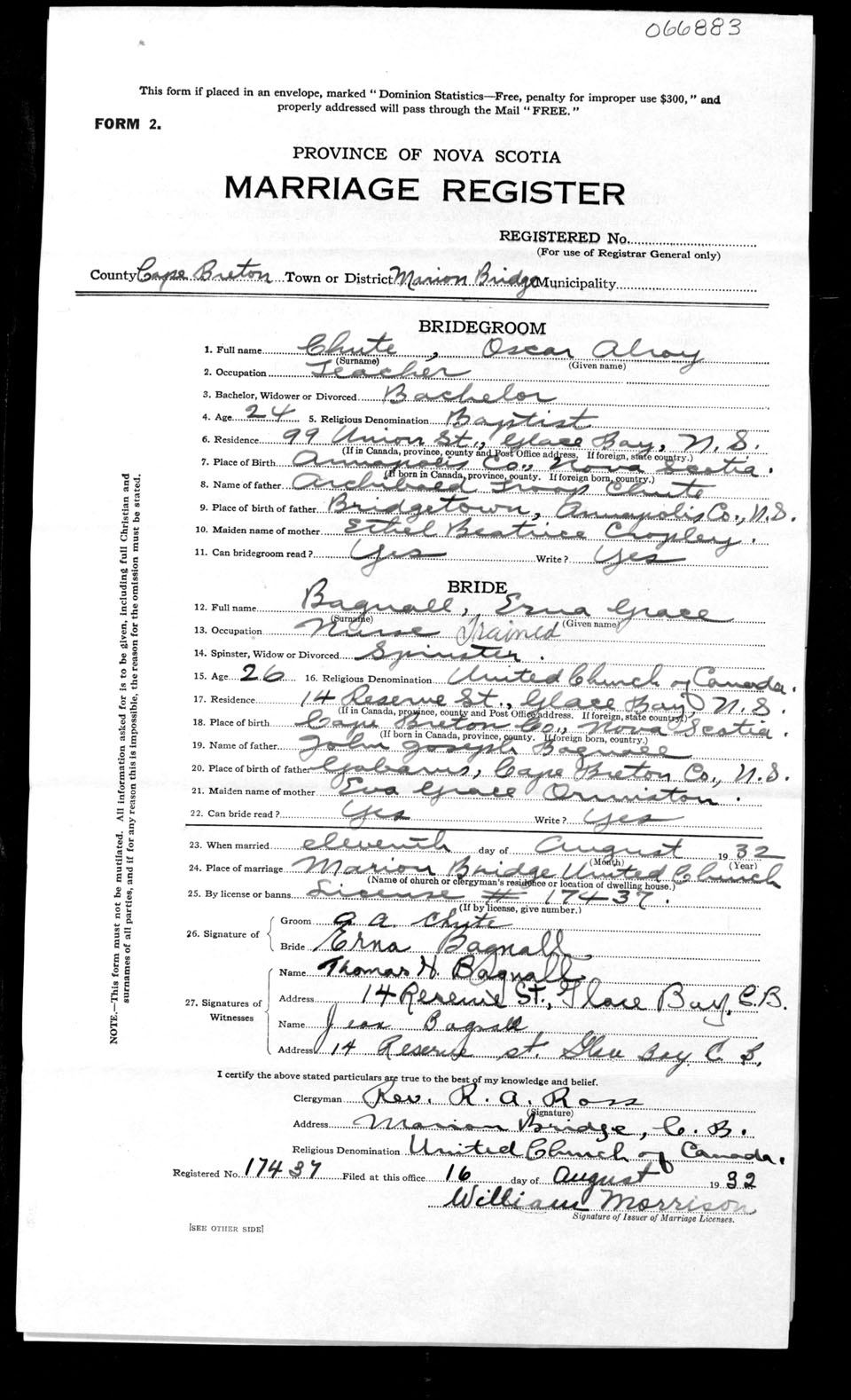 Registration: Year: 1932 number: 66883