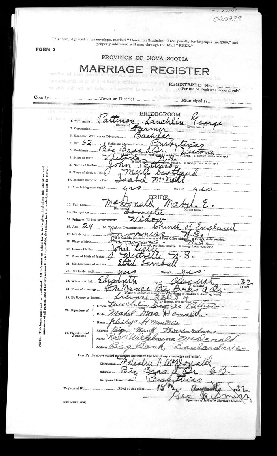 Registration: Year: 1932 number: 66933