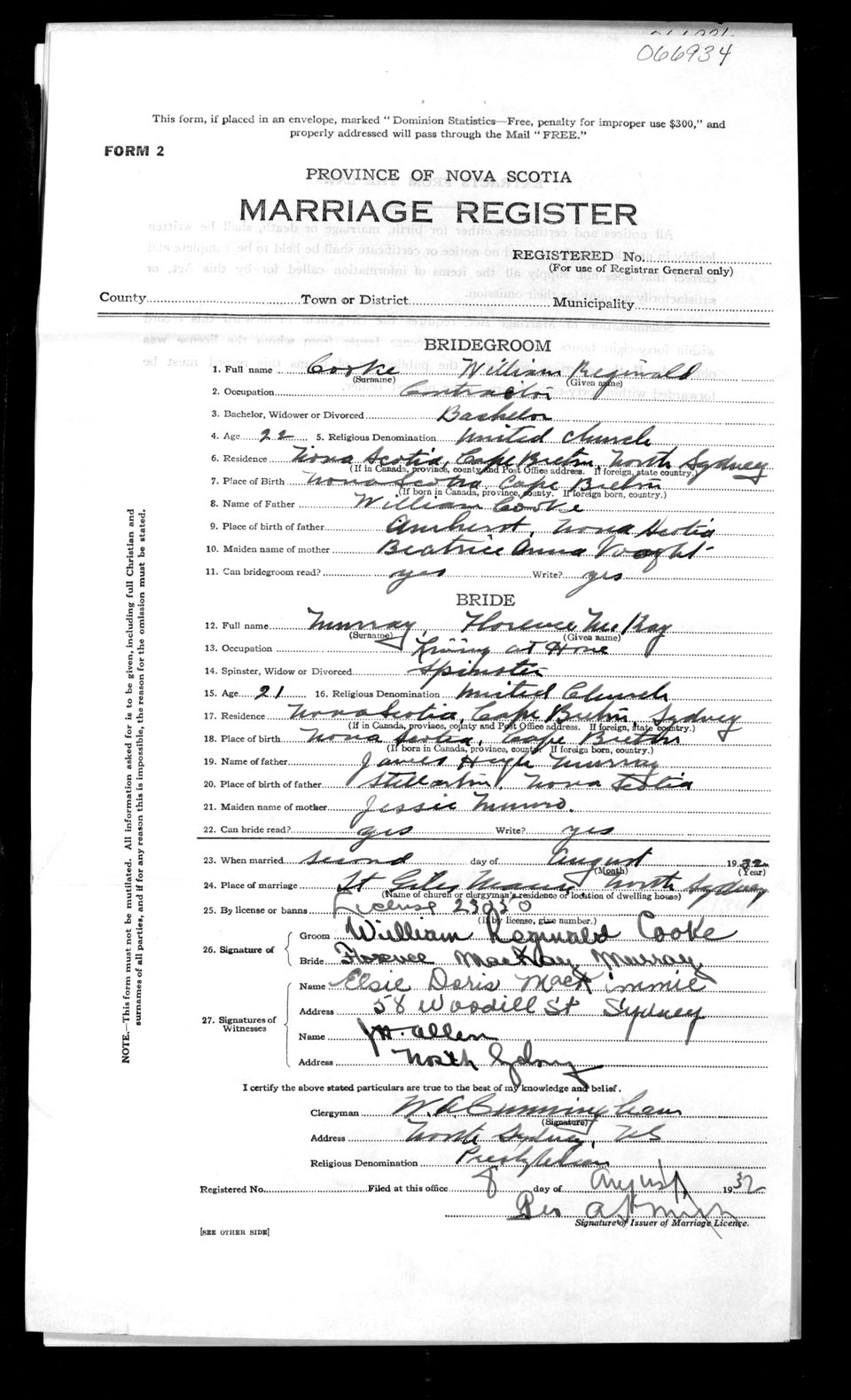 Registration: Year: 1932 number: 66934