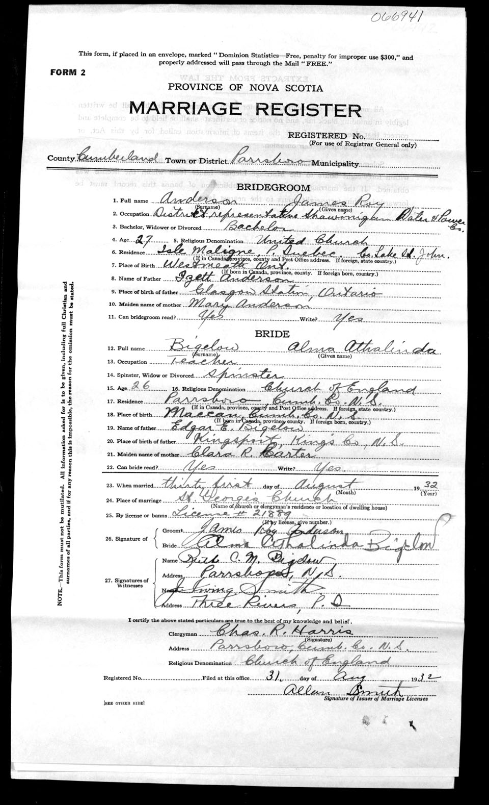 Registration: Year: 1932 number: 66941