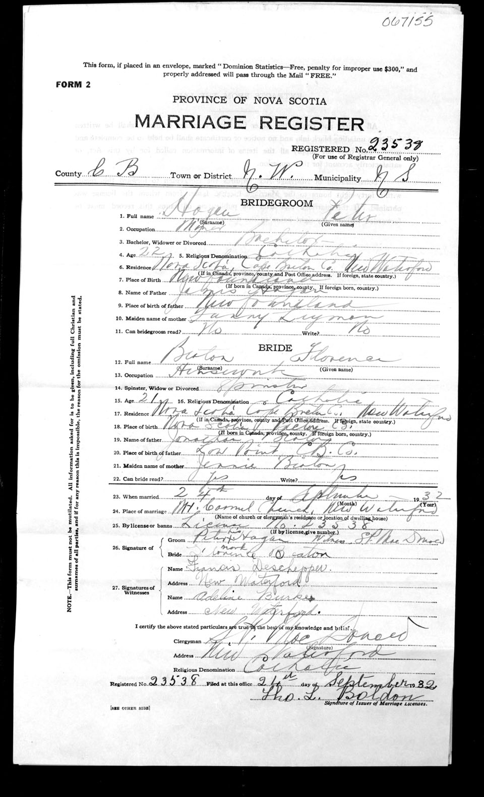 Registration: Year: 1932 number: 67155