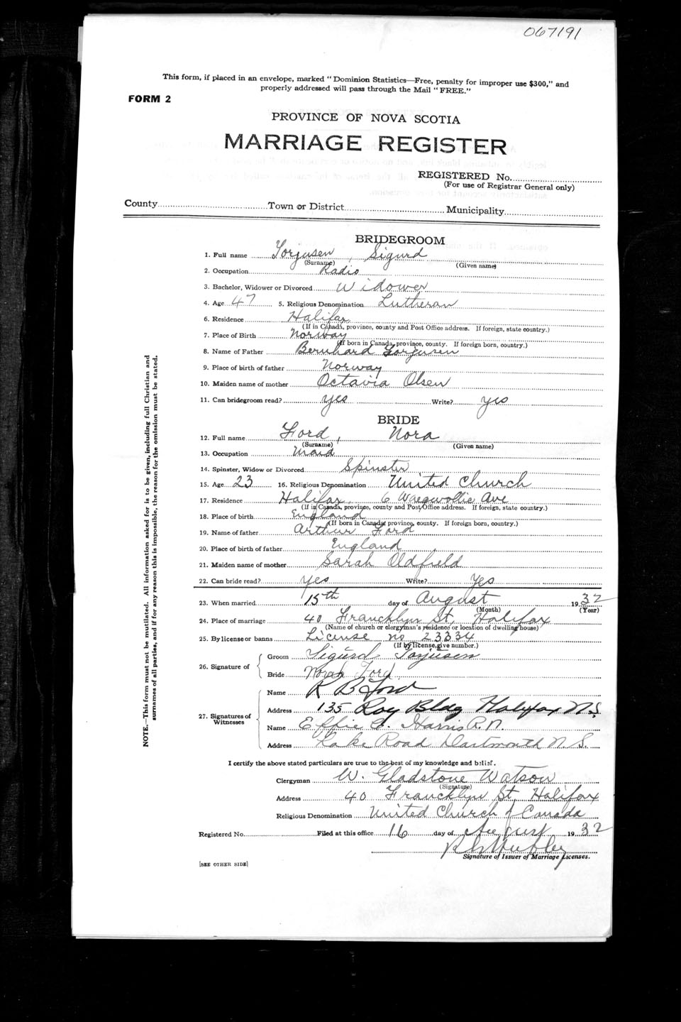 Registration: Year: 1932 number: 67191