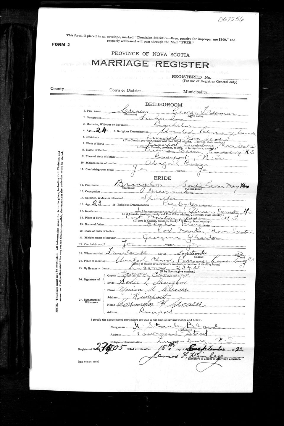 Registration: Year: 1932 number: 67256