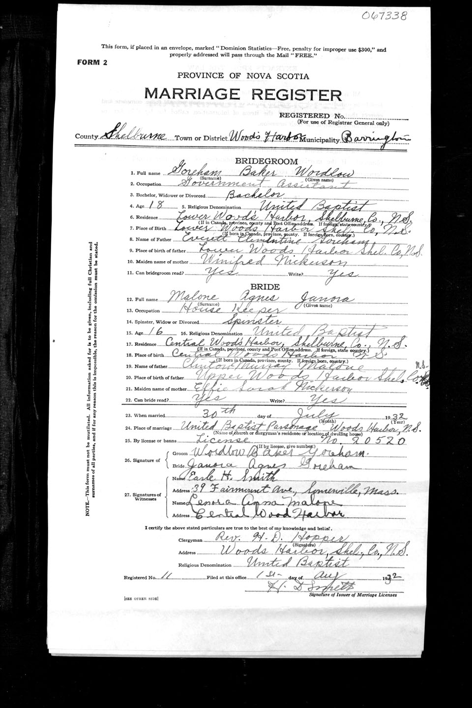 Registration: Year: 1932 number: 67338