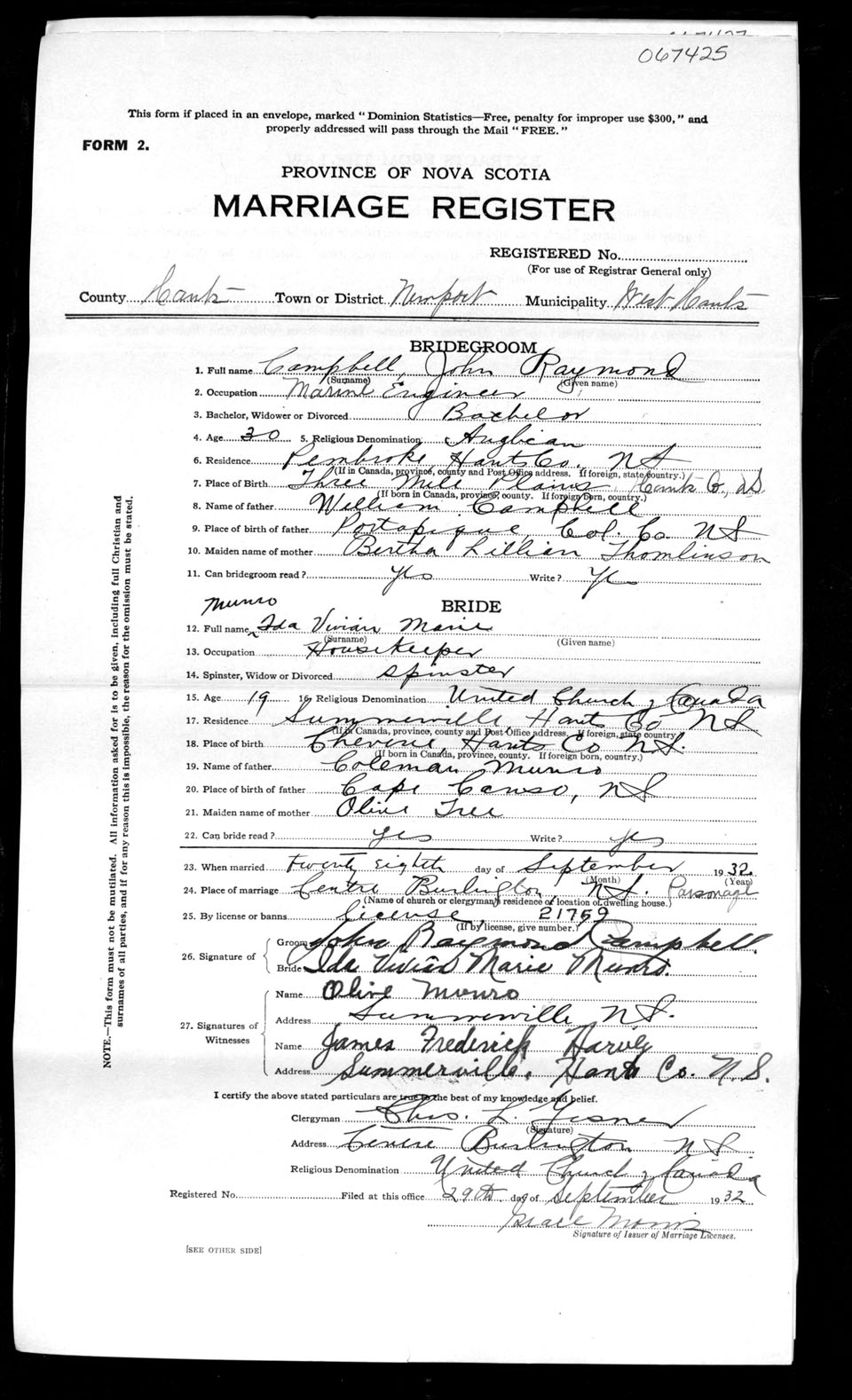 Registration: Year: 1932 number: 67425
