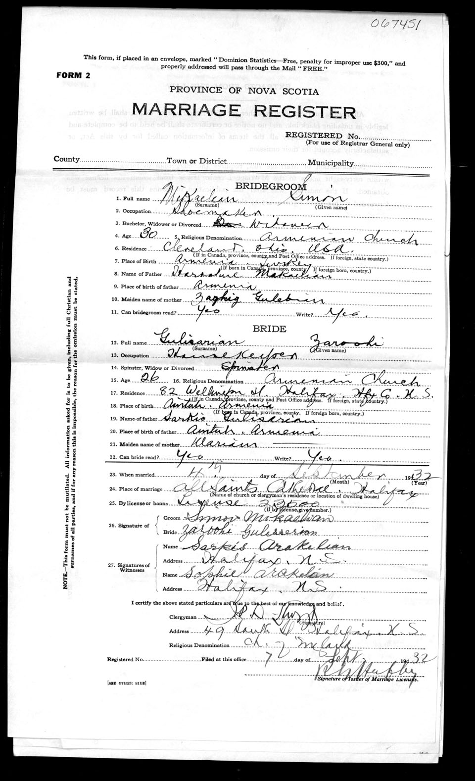 Registration: Year: 1932 number: 67451