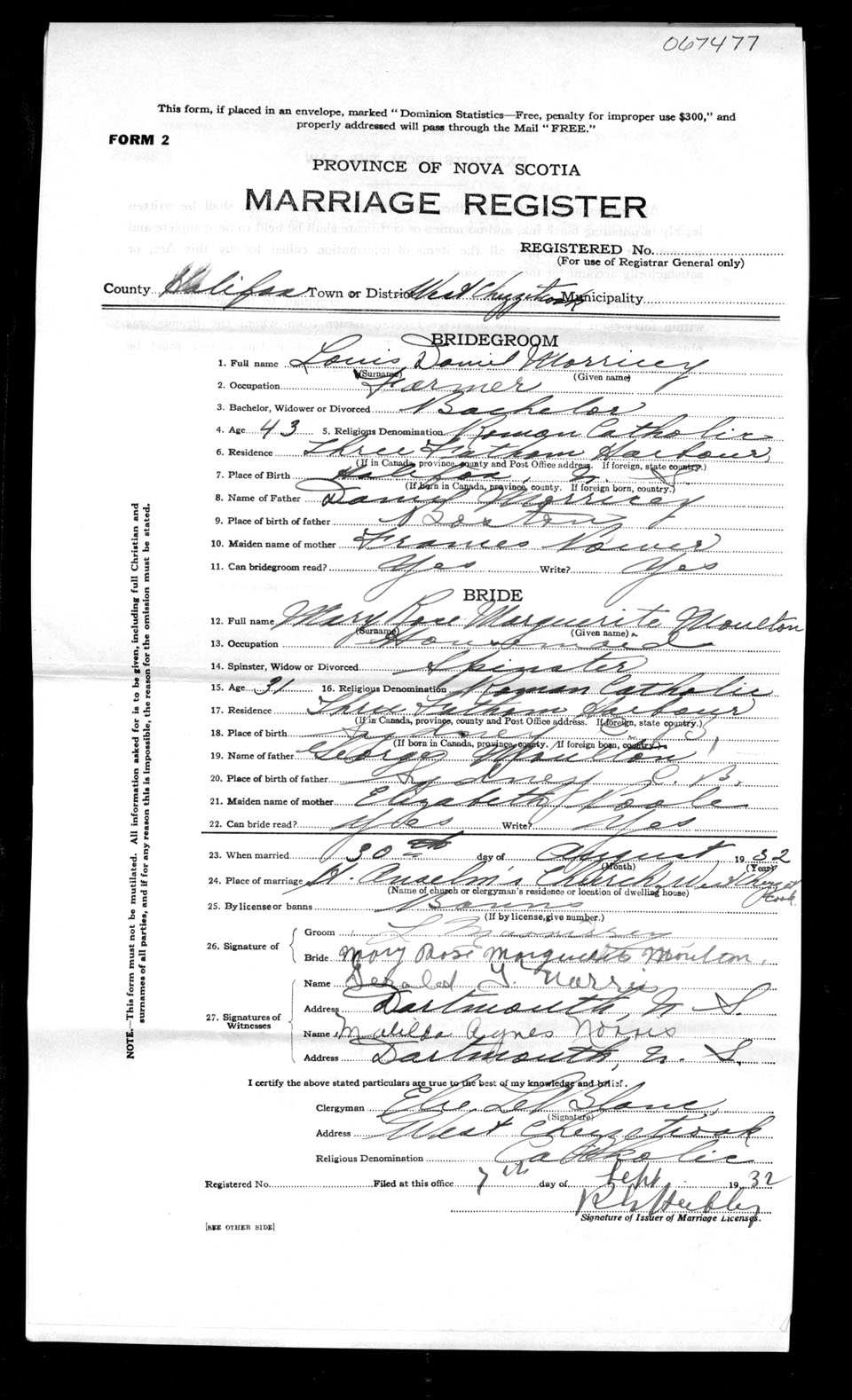 Registration: Year: 1932 number: 67477
