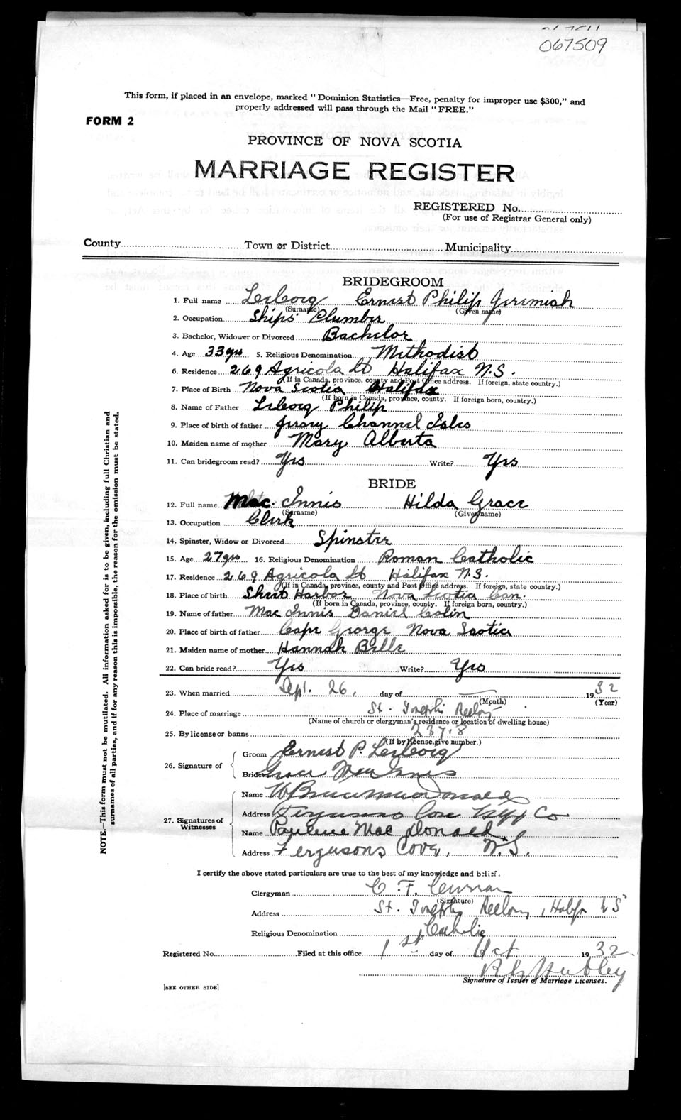 Registration: Year: 1932 number: 67509