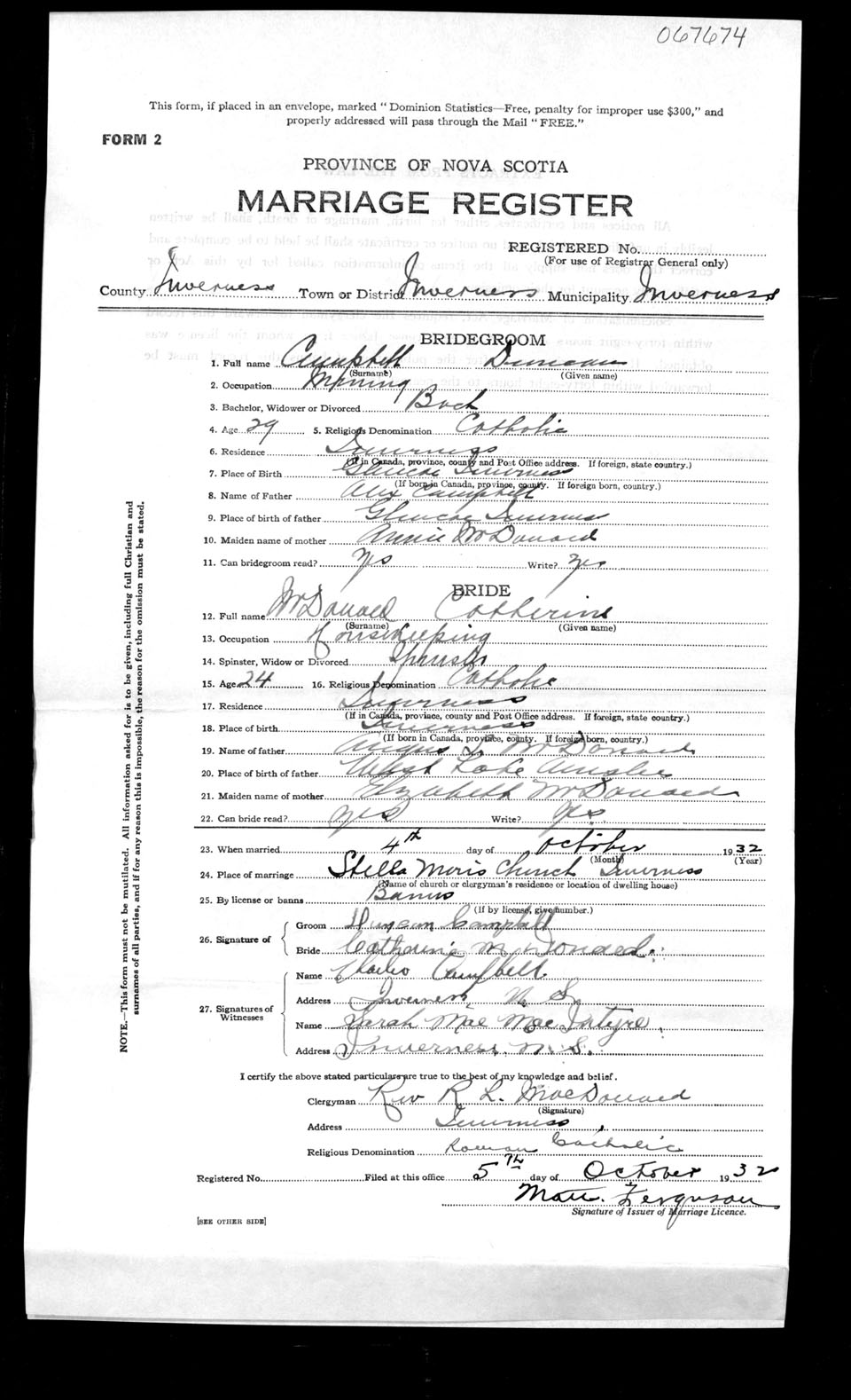 Registration: Year: 1932 number: 67674