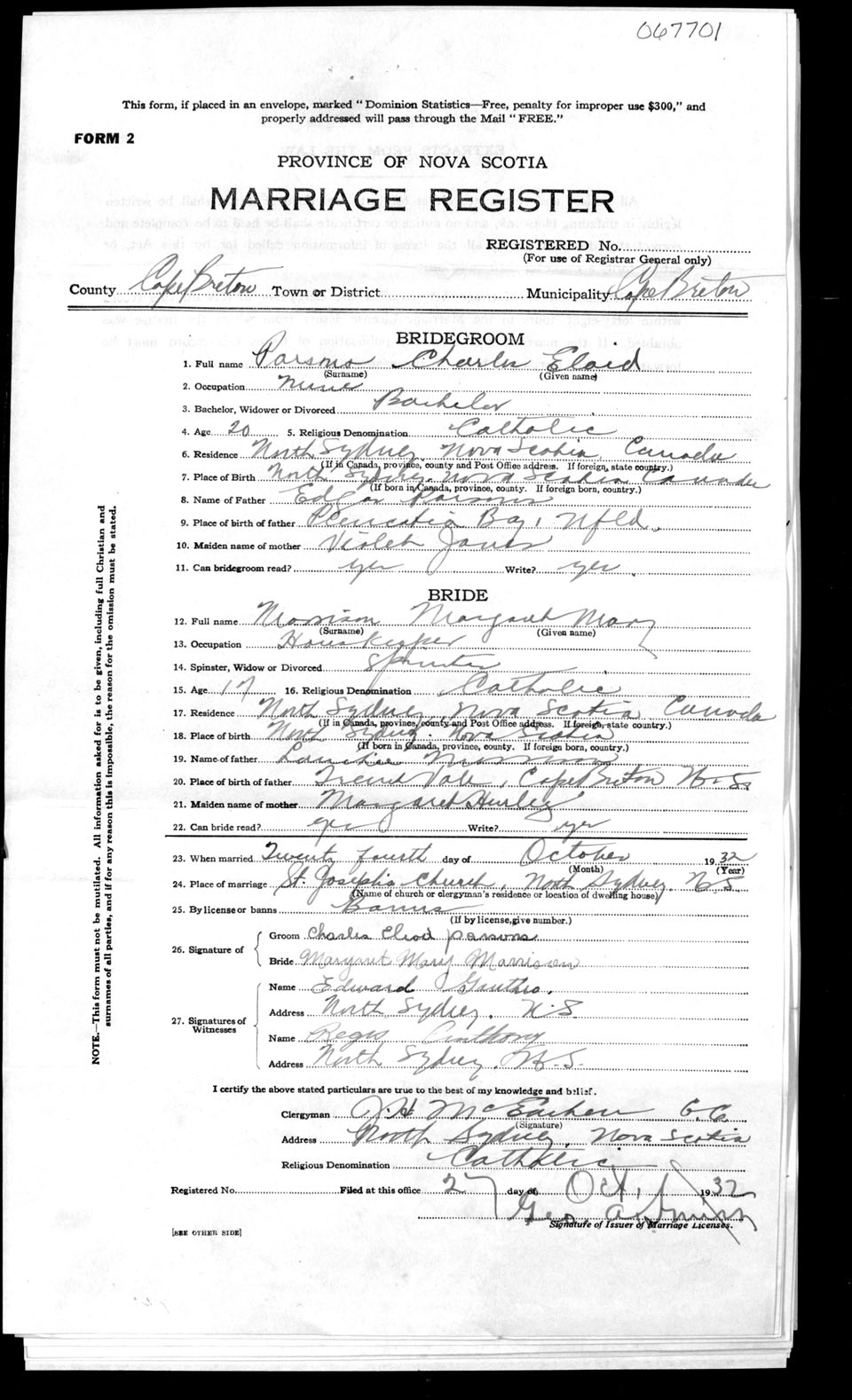 Registration: Year: 1932 number: 67701