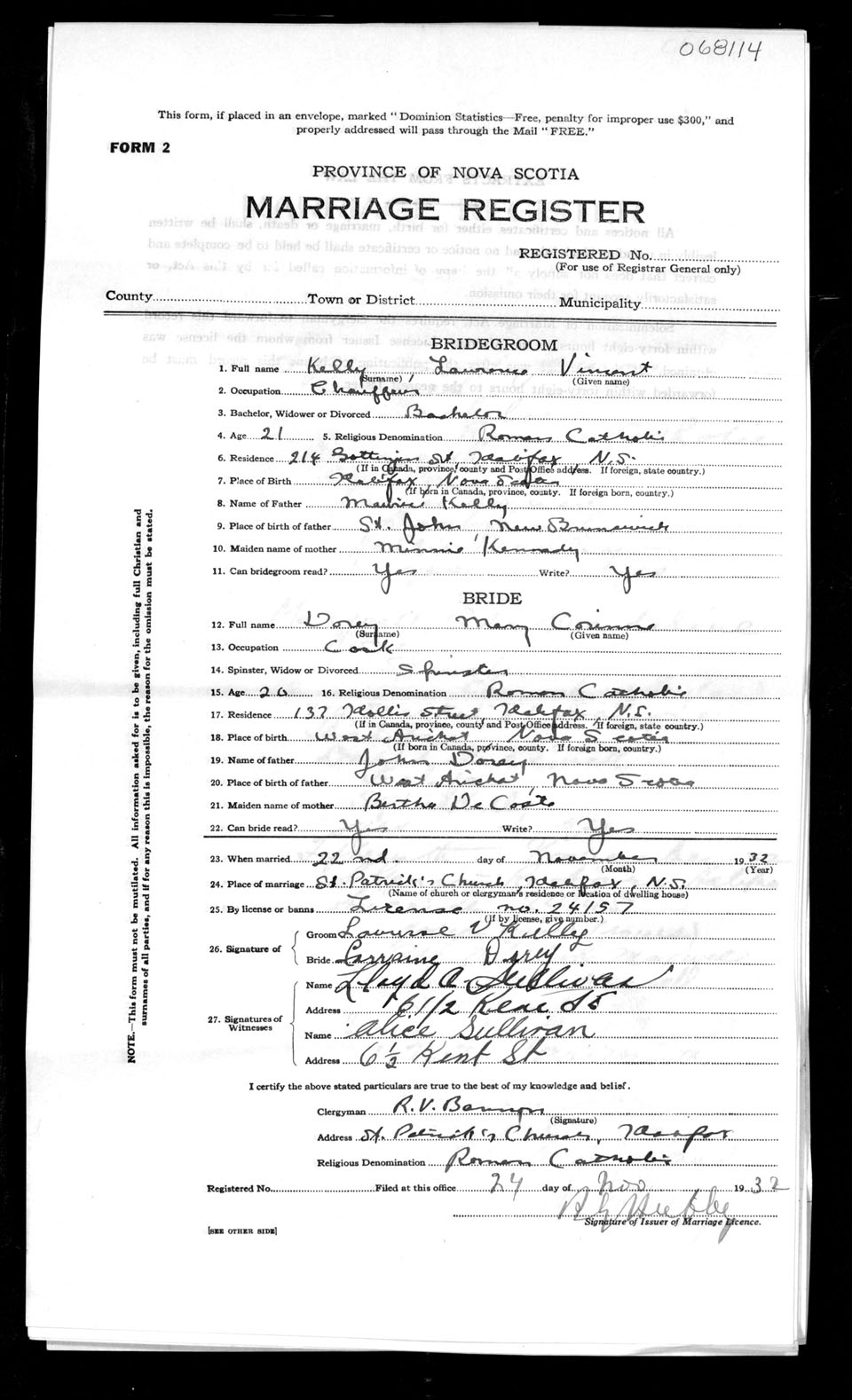 Registration: Year: 1932 number: 68114