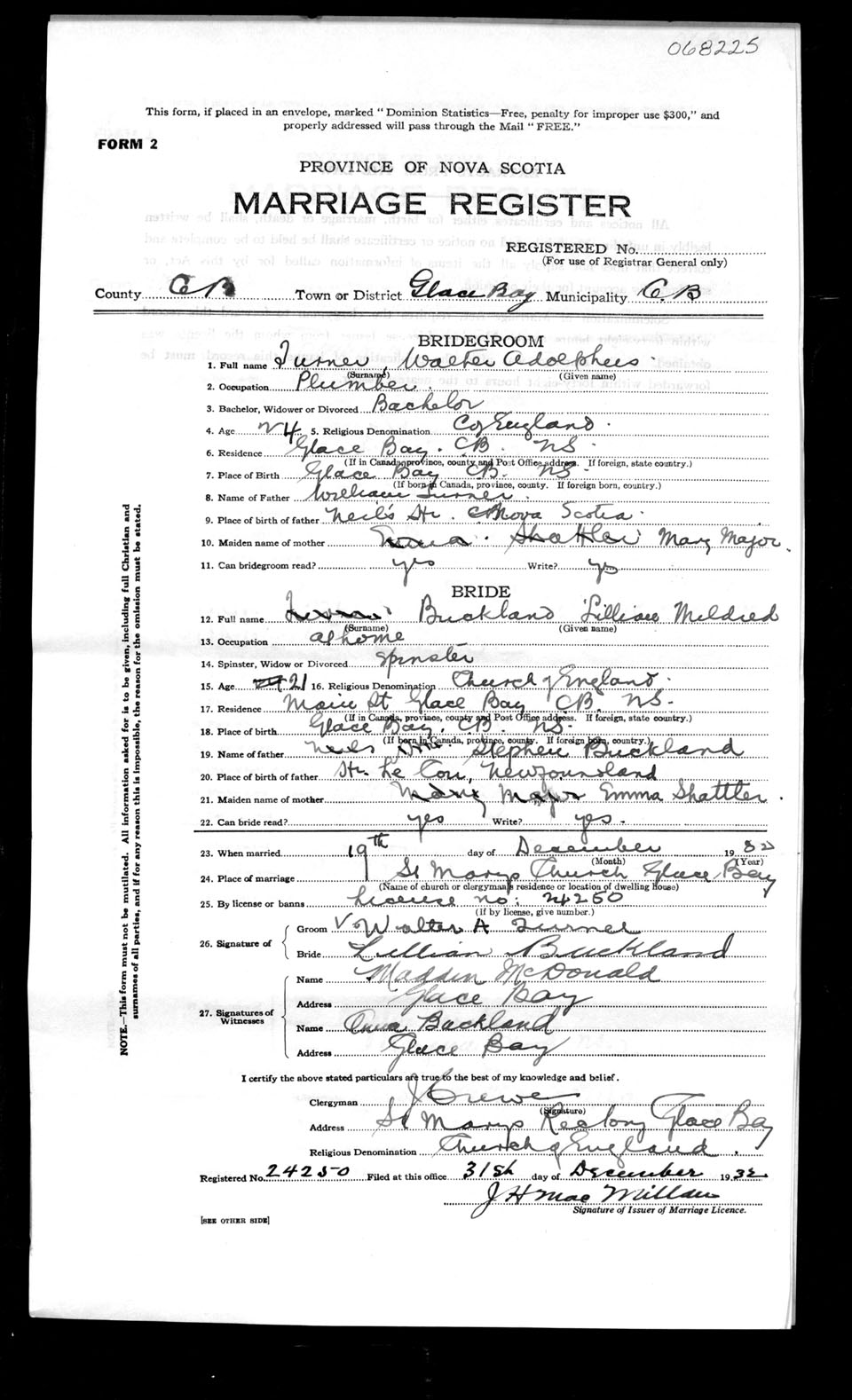 Registration: Year: 1932 number: 68225
