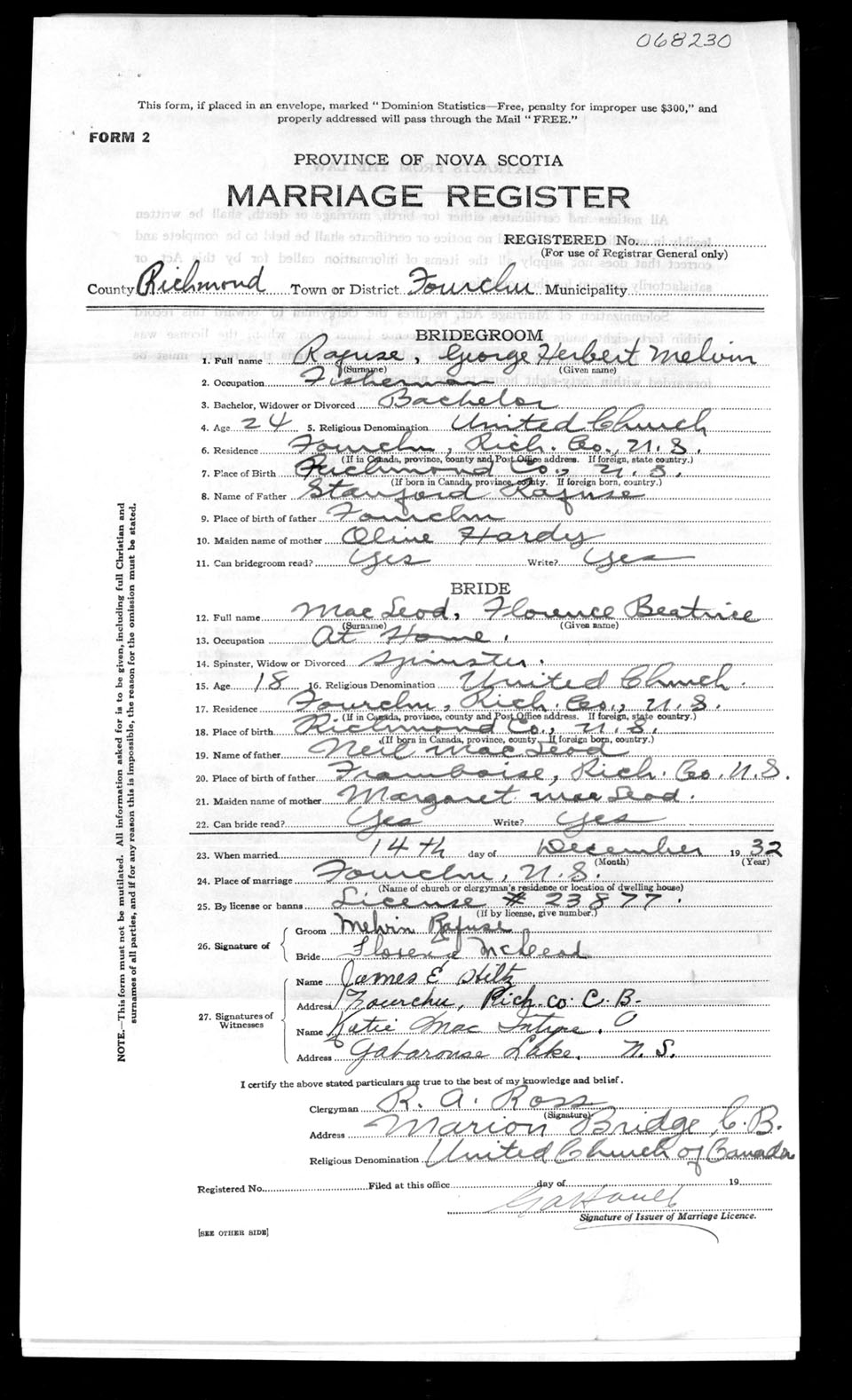 Registration: Year: 1932 number: 68230